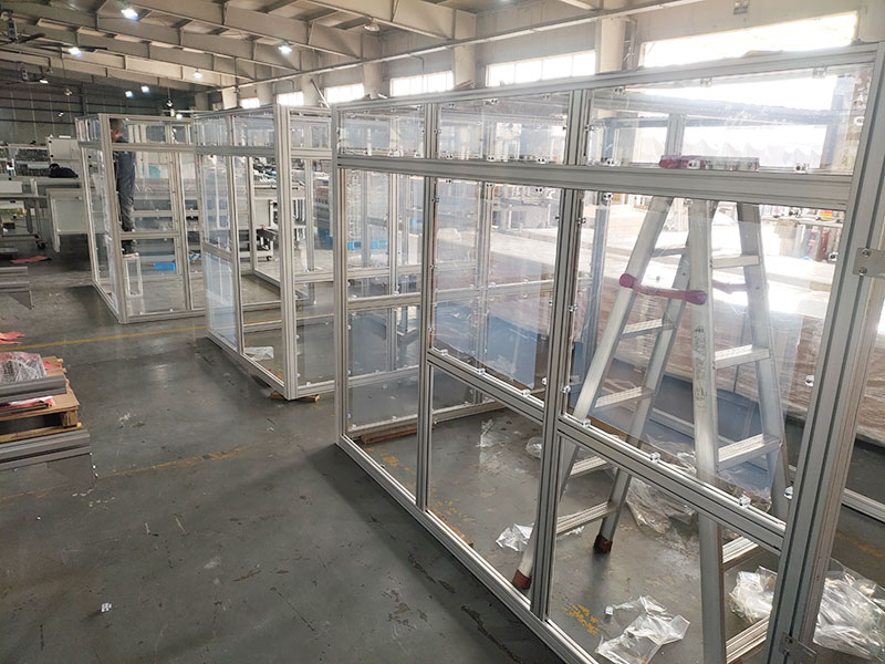 自動化設備防護罩,機器人安全防護罩,香蕉视频首页透明亞克力護罩,設備防護罩主要應用於工業生產線規劃,根據使用需求設計搭建的安全防護係統,可分為網片圍欄、有機玻璃防護、金屬板材等幾種形式,可以根據現場使用需求進行選擇;
